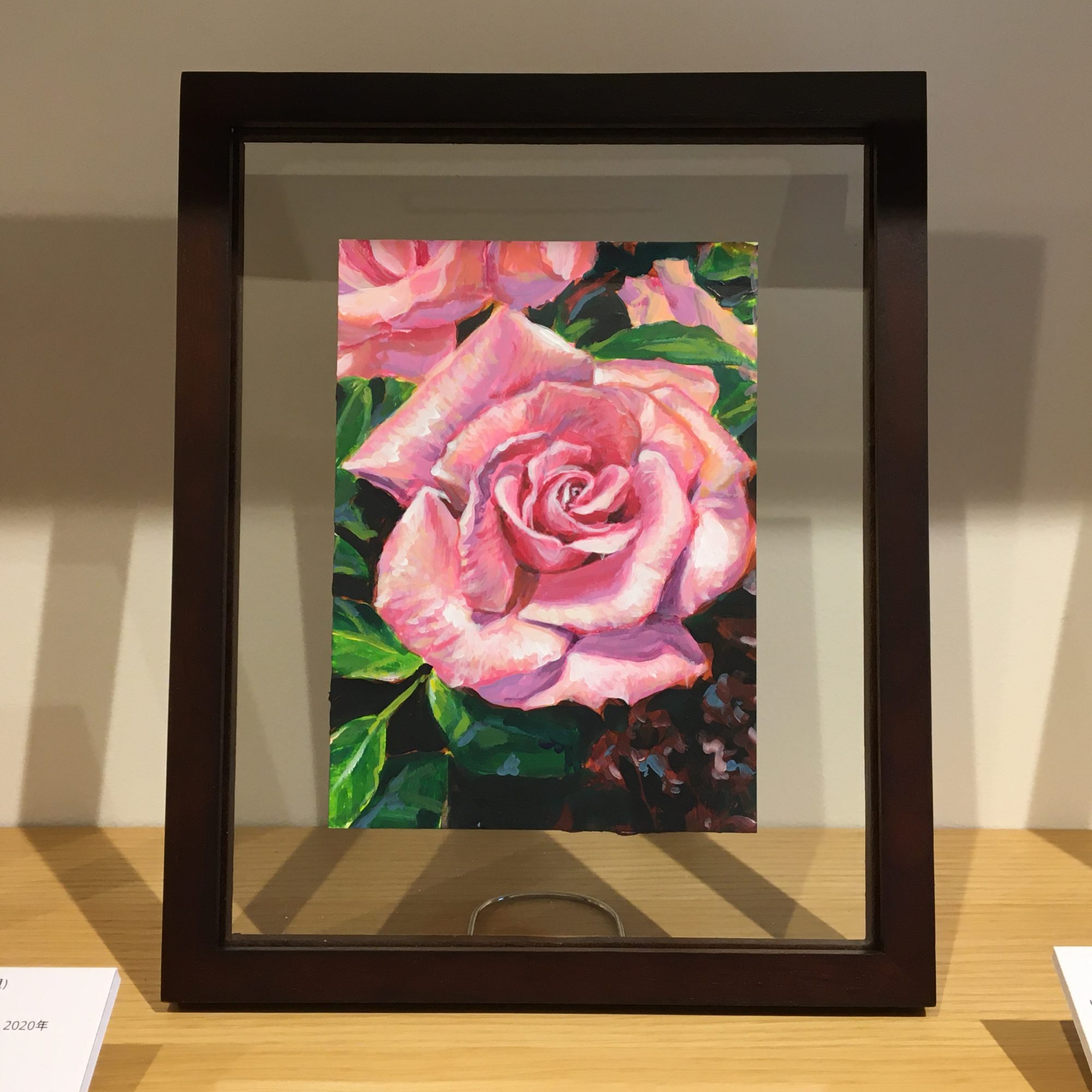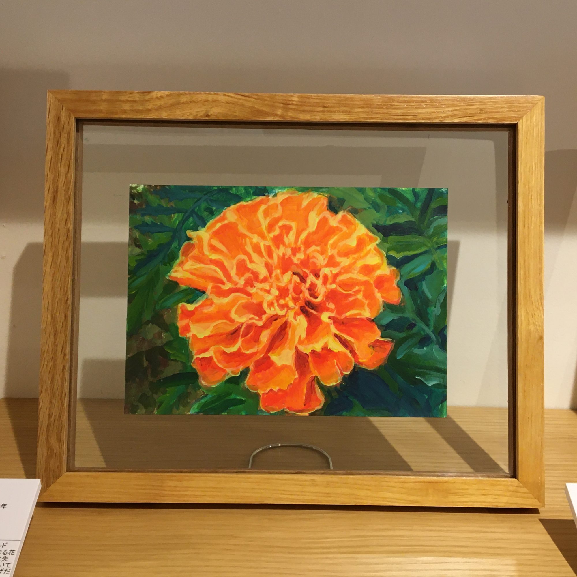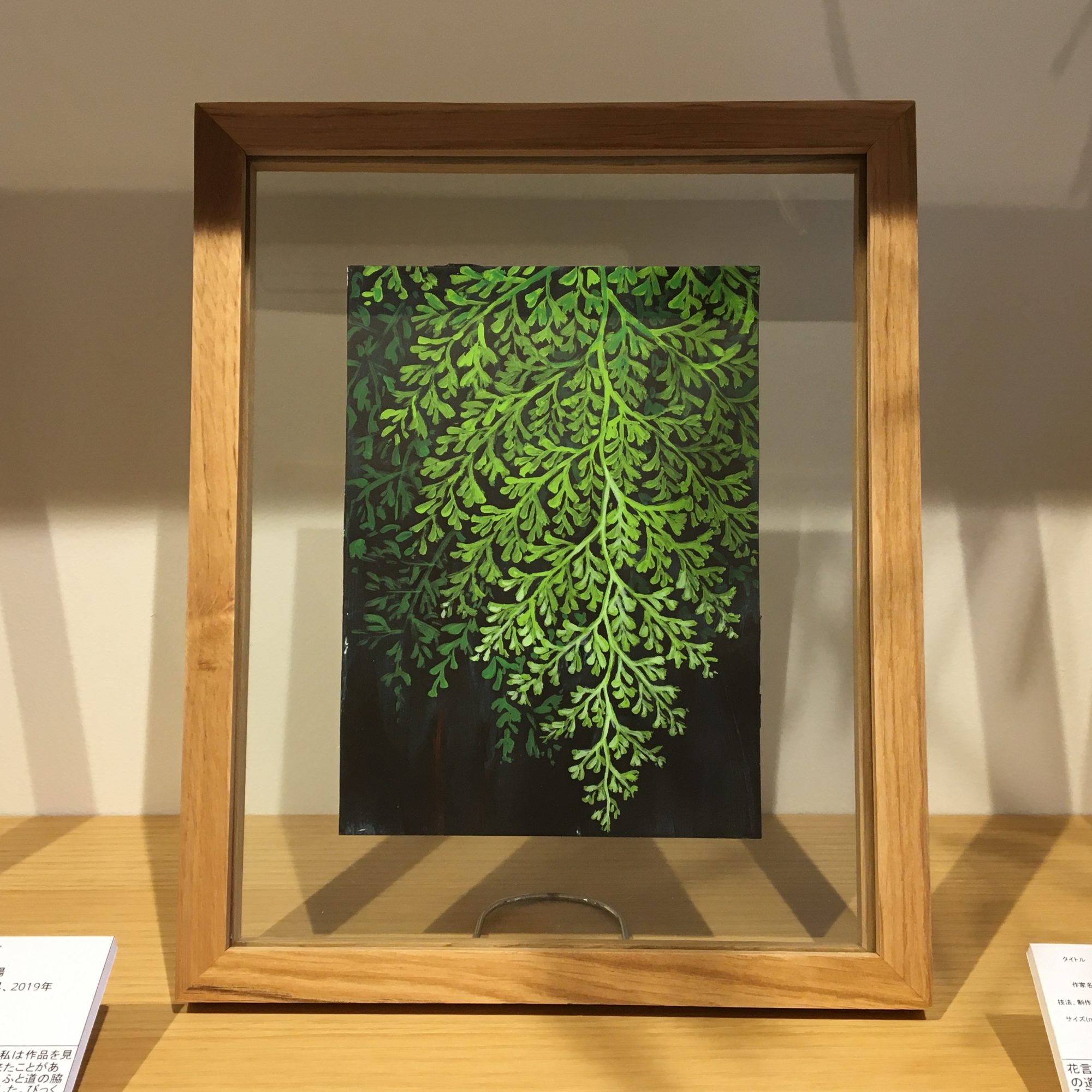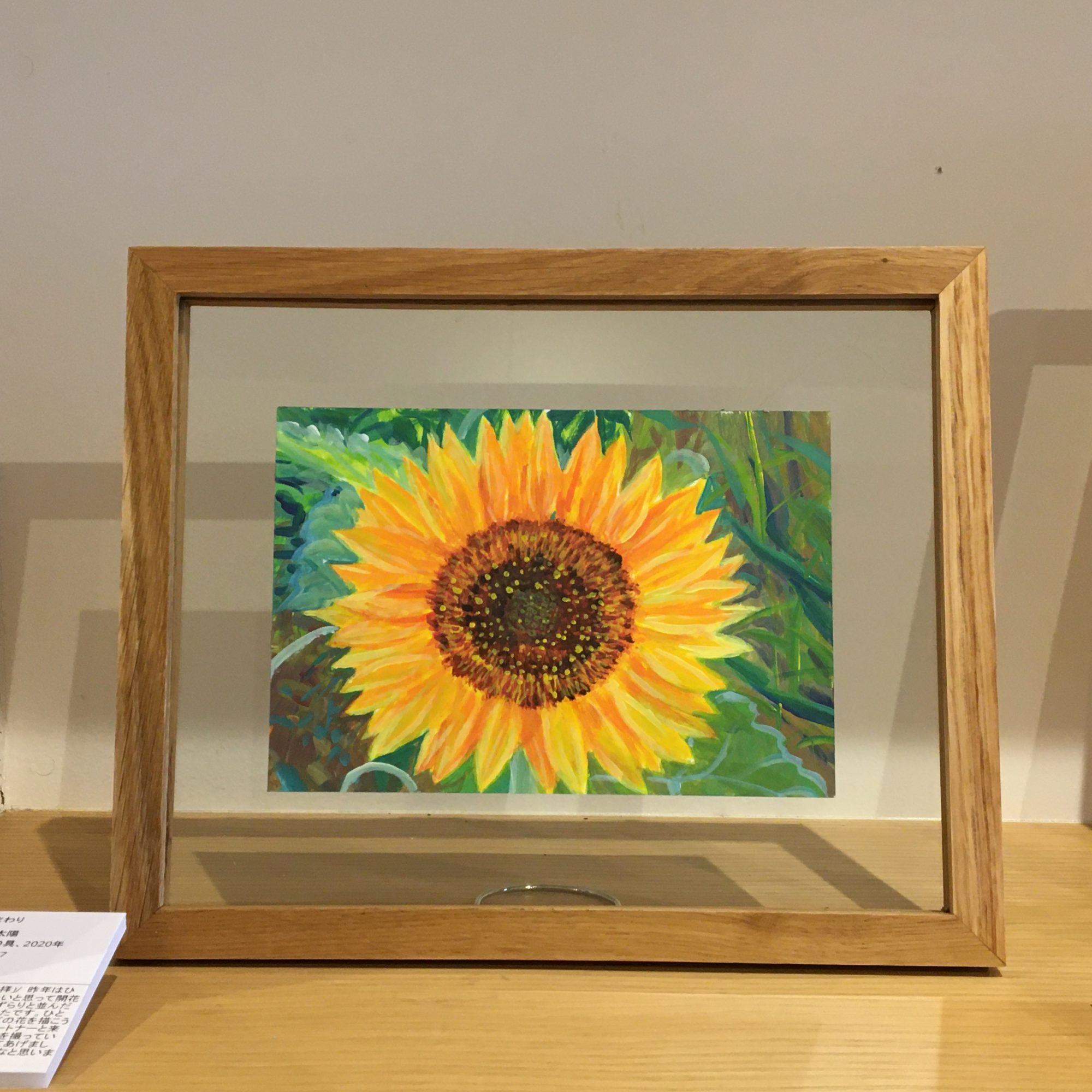 作品は、ガラスのフレームに入っています。