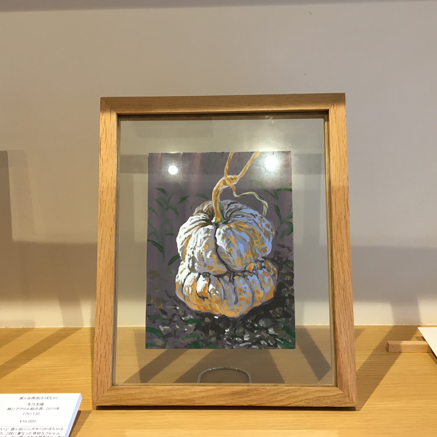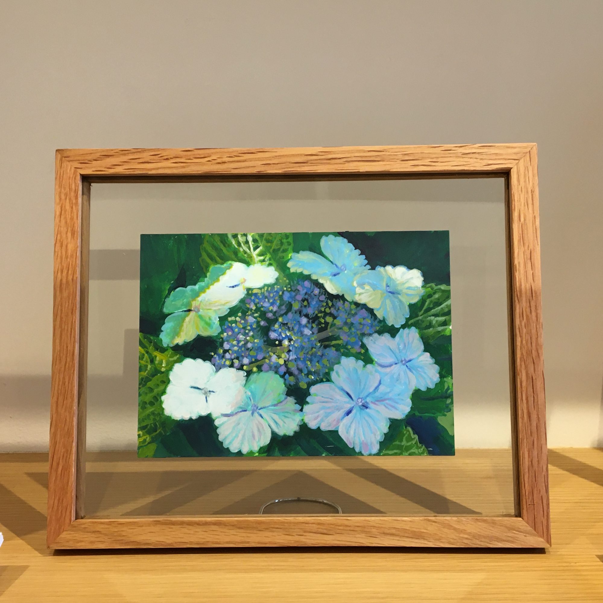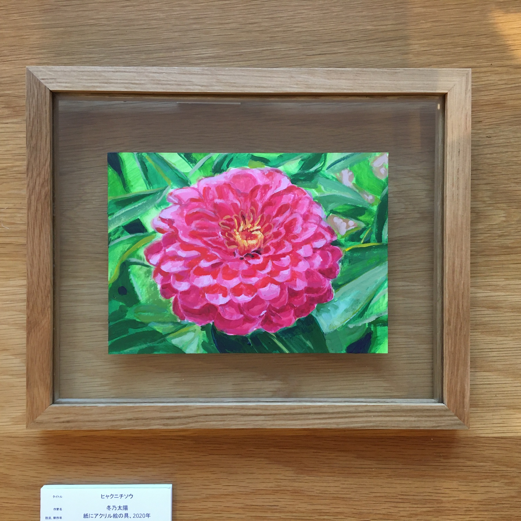 作品は、ガラスのフレームに入っています。