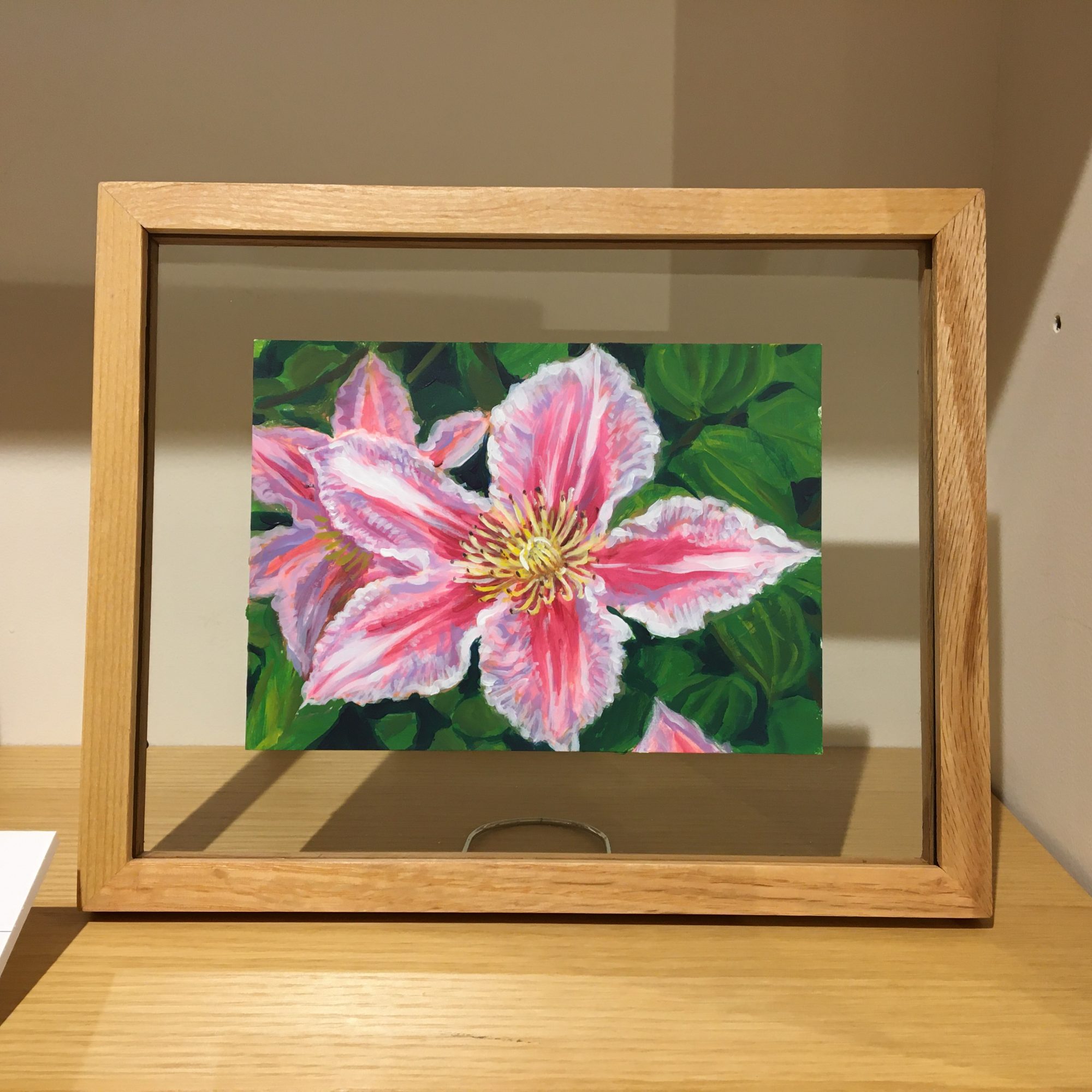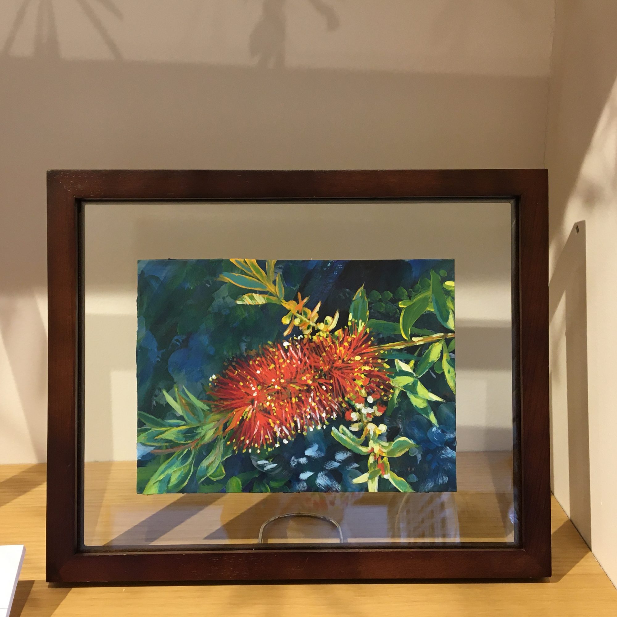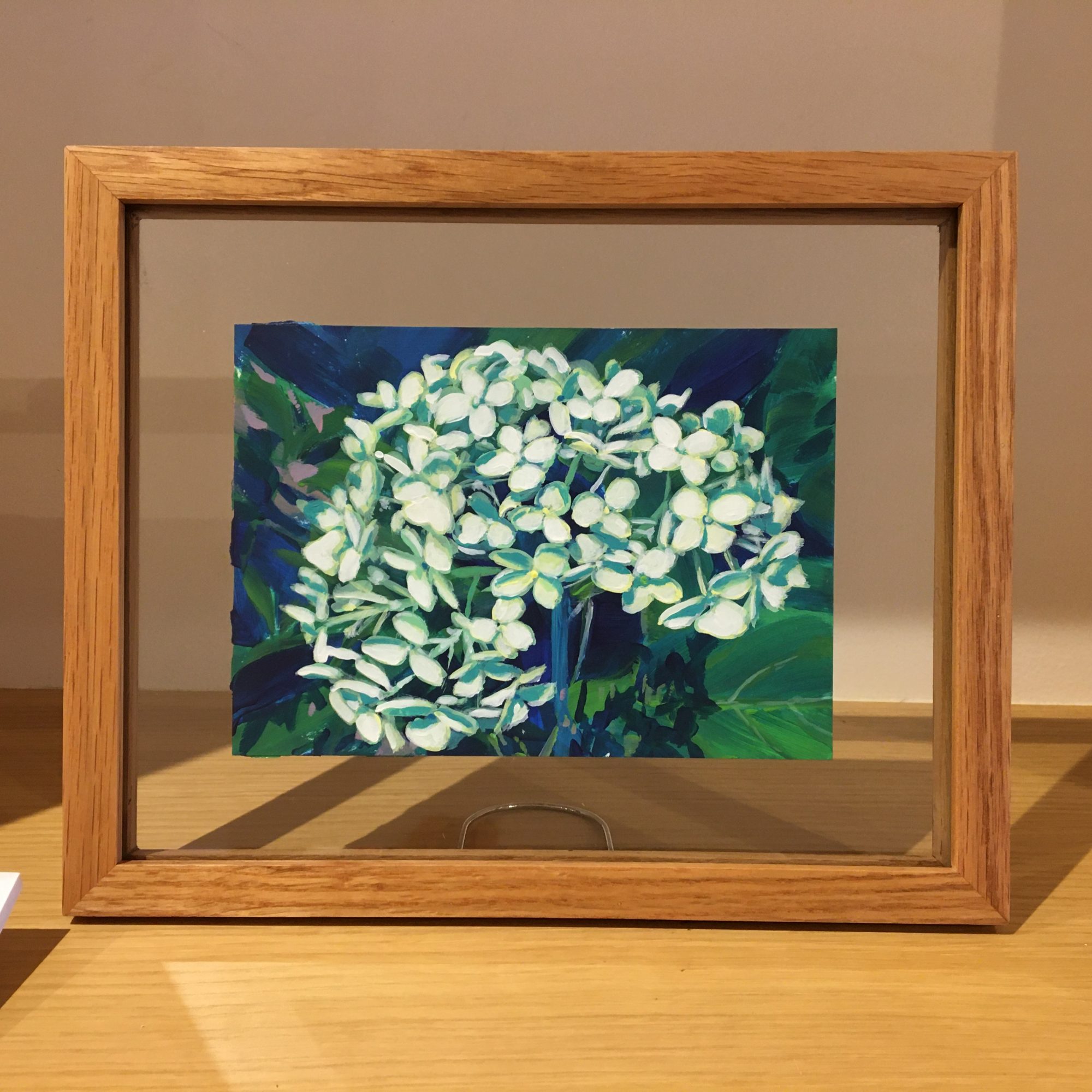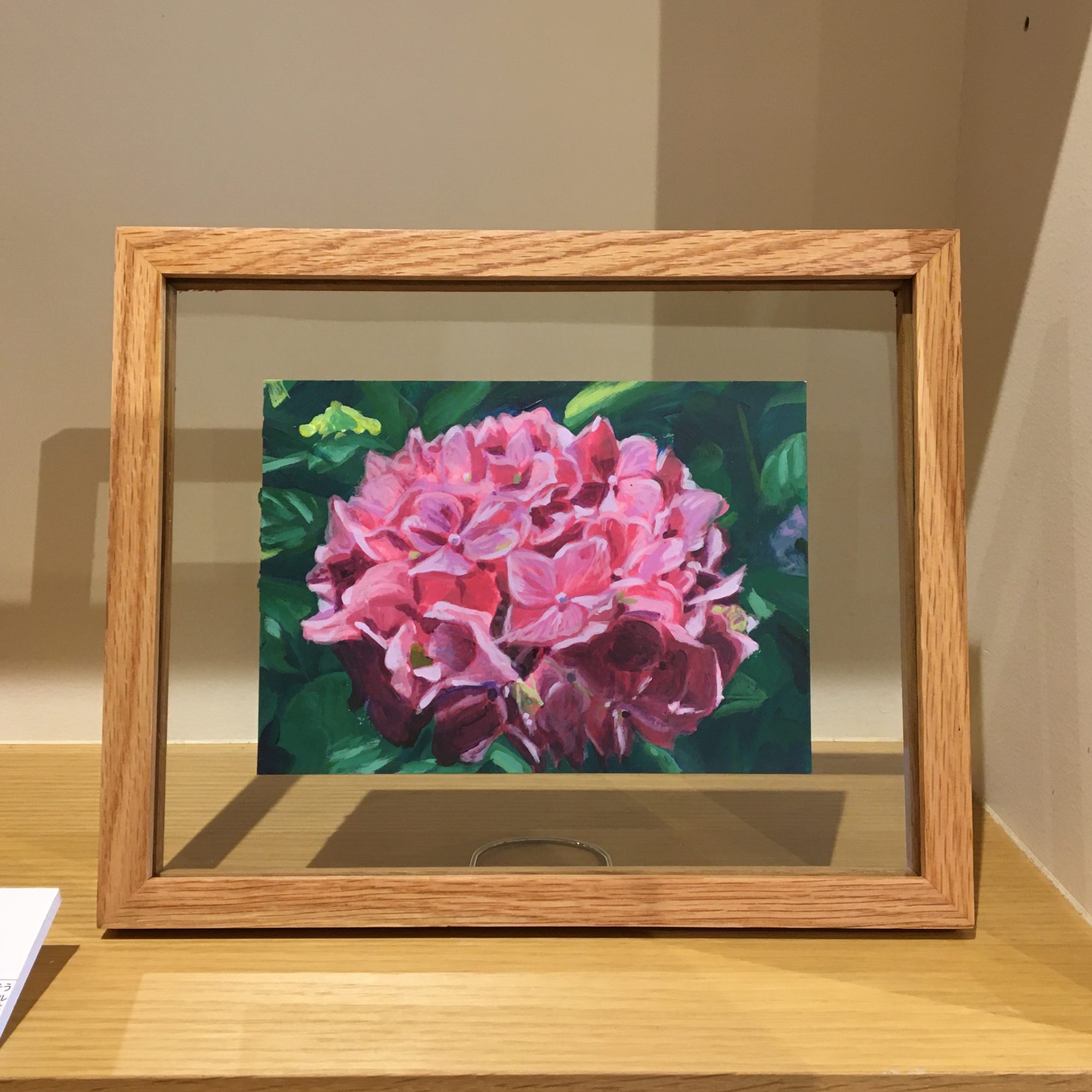 作品は、ガラスのフレームに入っています。