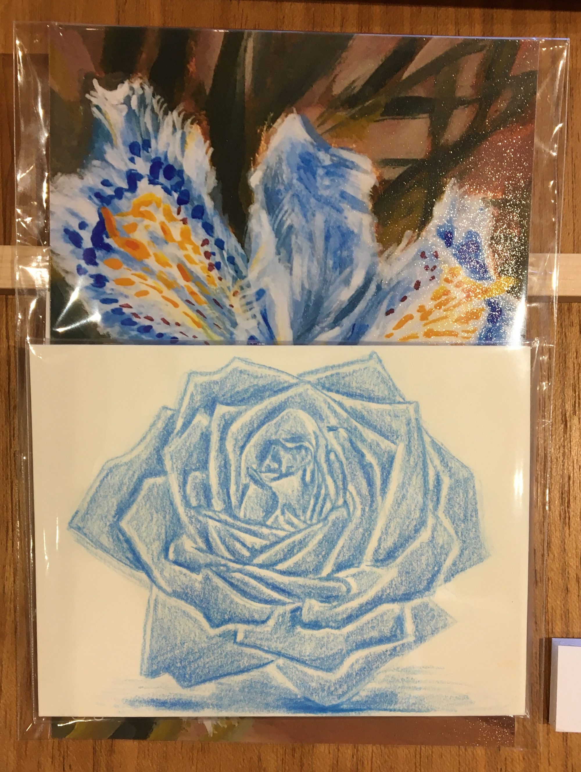 sold/ ポストカード付きミニドローイング (青いバラ)