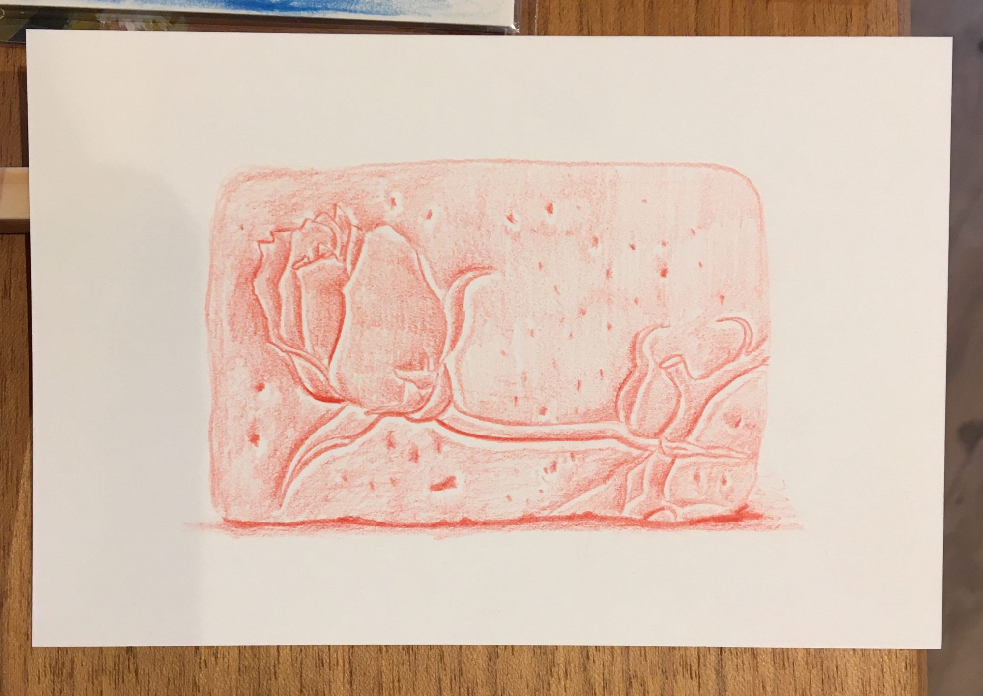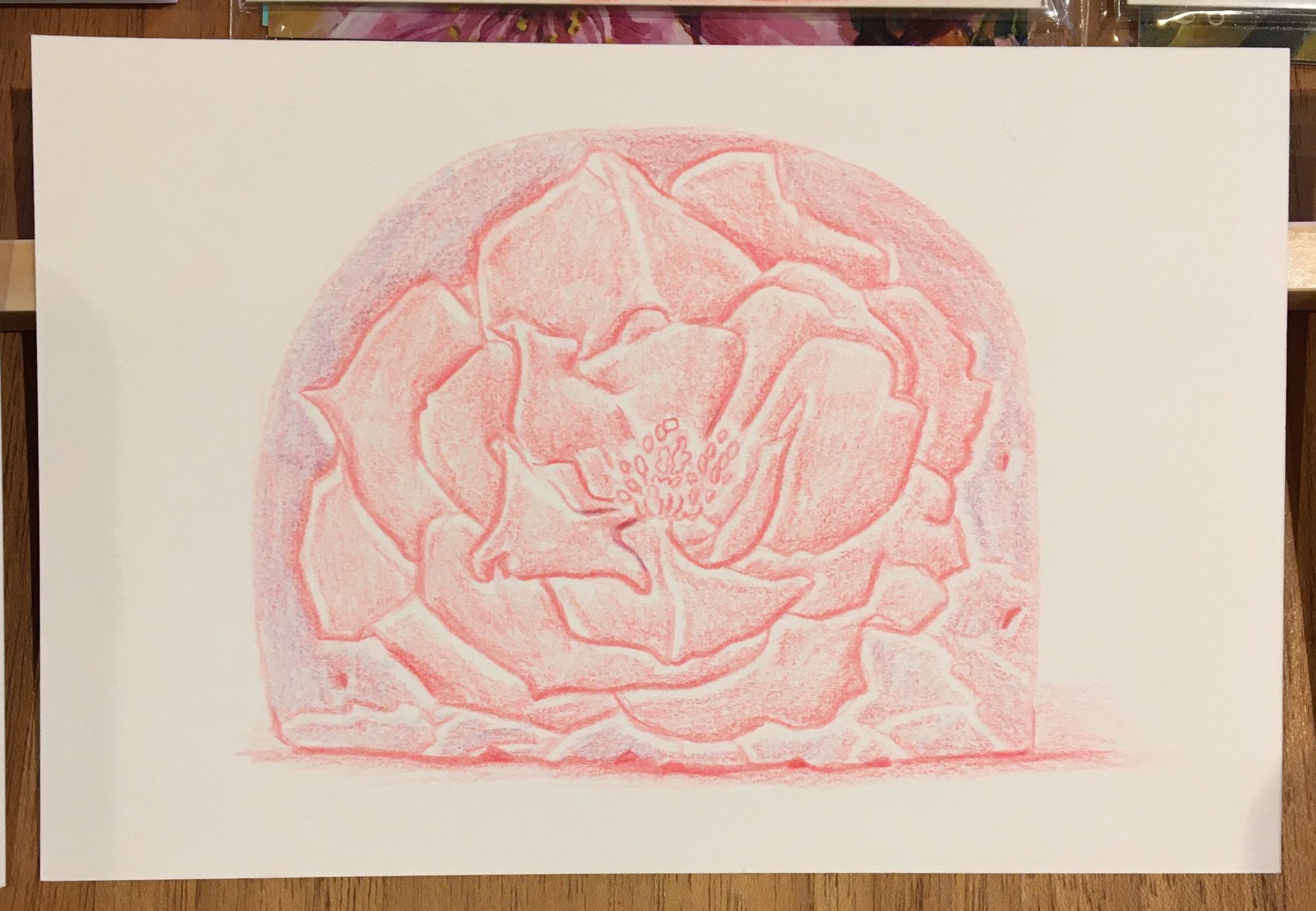 sold/ポストカード付きミニドローイング (赤いバラ)