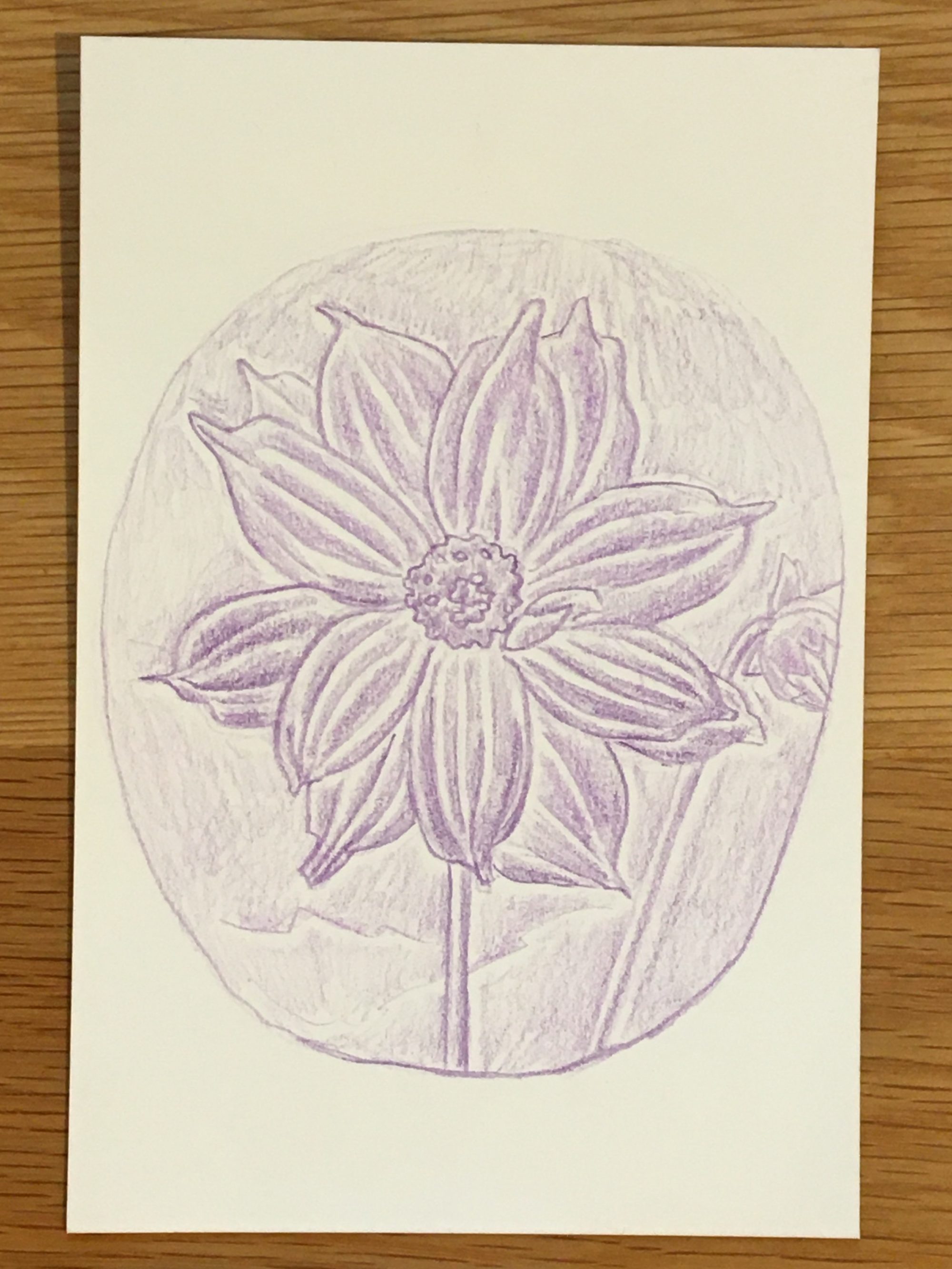 ポストカード付きミニドローイング (ダリア)