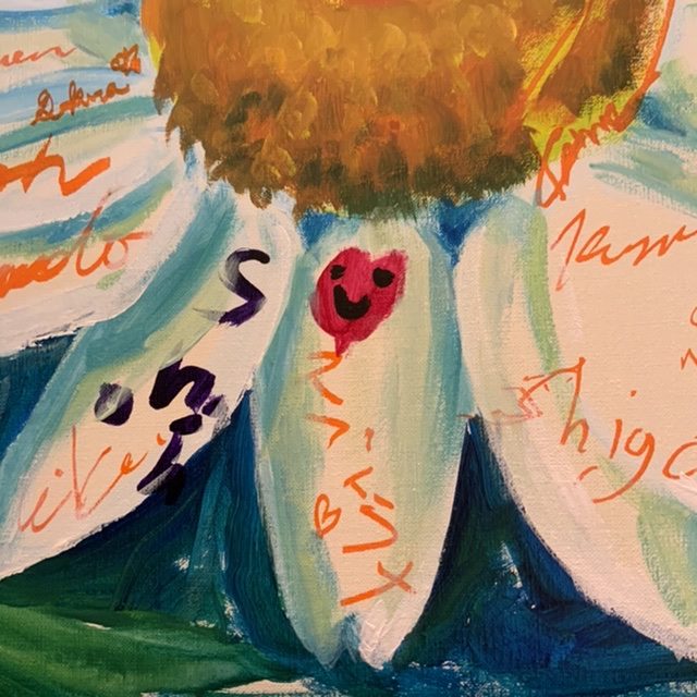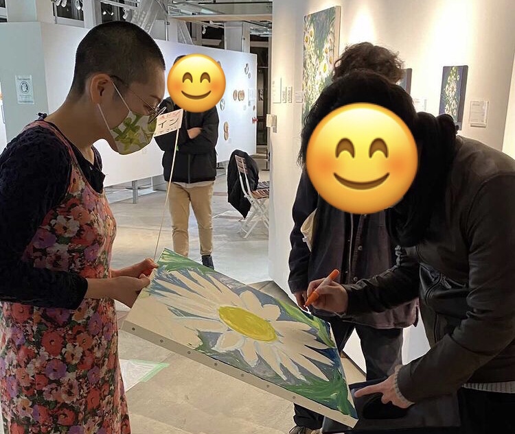 東京では搬入、搬出と在廊2日間というあまり会場にいることができなかったのですが、それでもお客さまにお会いできて嬉しかったです。ライブペイントイベントに参加した時は、その場にいる方に絵にサインしてもらいました。今日ここへ来た記念を絵に残して頂こうと思って行いました。たくさんの方にサインしてもらえて絵も賑やかになりました!子供たちはサインだけでなく絵も描いてくれた、ライブだと何が起こるか分からないので面白いです。子供たちが絵を描きたい、とやってくるとは思いもよりませんでした!ライブペイントはまだまだ経験数が少ないので改善すべきことが多いです。集中しすぎて周りが見えなくなったりするところを改善したいなと思っています。これも経験です。これからもライブで描くことはやりたいなと思います。このイベントで特別な時間を共に過ごせて私も楽しかったです!!
